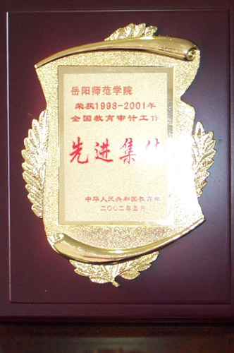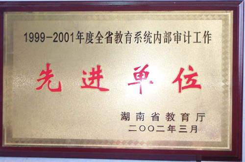 2005年审计署授予“内部审计先进单位” 称号 2001年审计厅授予“先进单位”称号 2002年教育部授“全国先进单位”称号 2002年教育厅授予”先进单位“称号 预算执行情况审计项目获全省教育系统一等奖 2002年岳阳市授予 “全市先进单位”称号