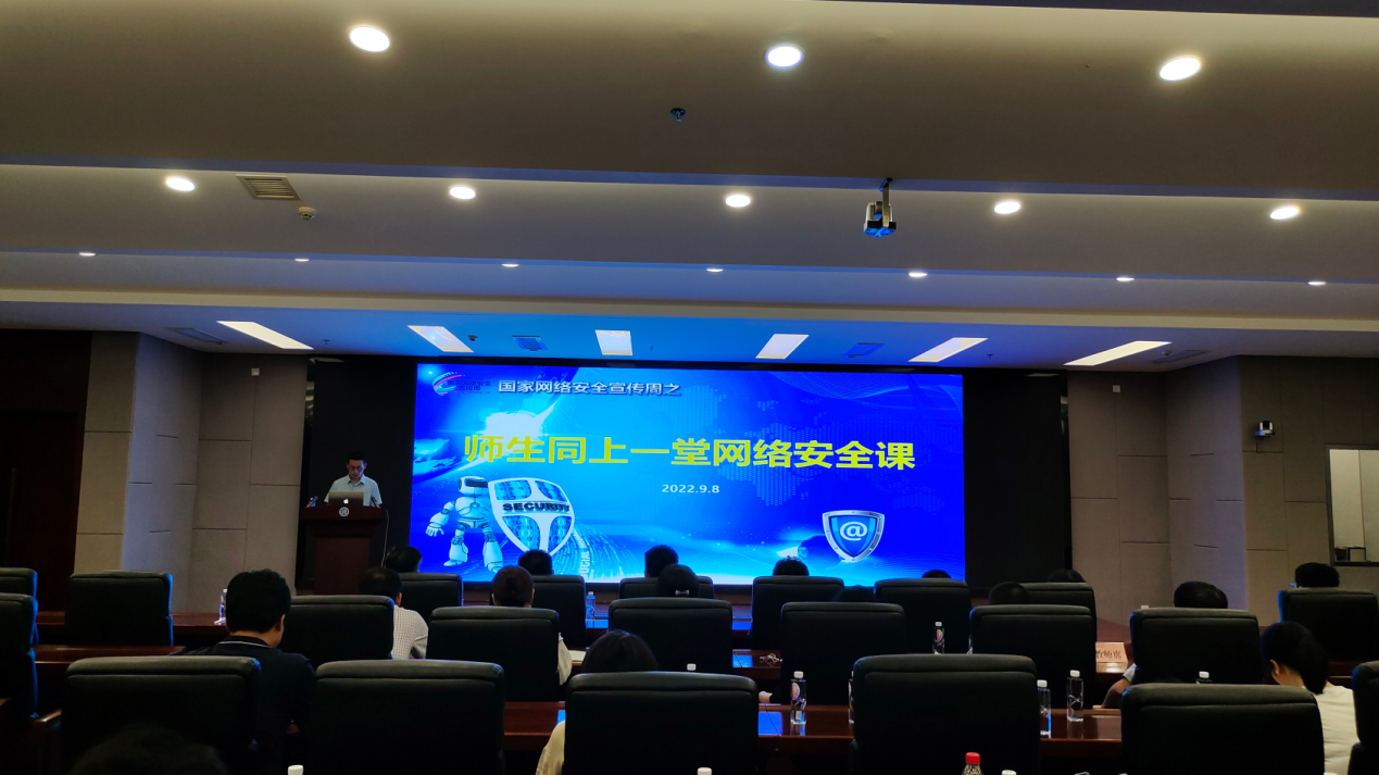 9月8日晚上,机关三总支全体党员教职工和部分学生代表在图书馆11楼会议室,参加了岳阳市公安局网技支队总工程师周勇警督上的一堂题为《e言e行见素养e点e滴筑安全》网络安全课。