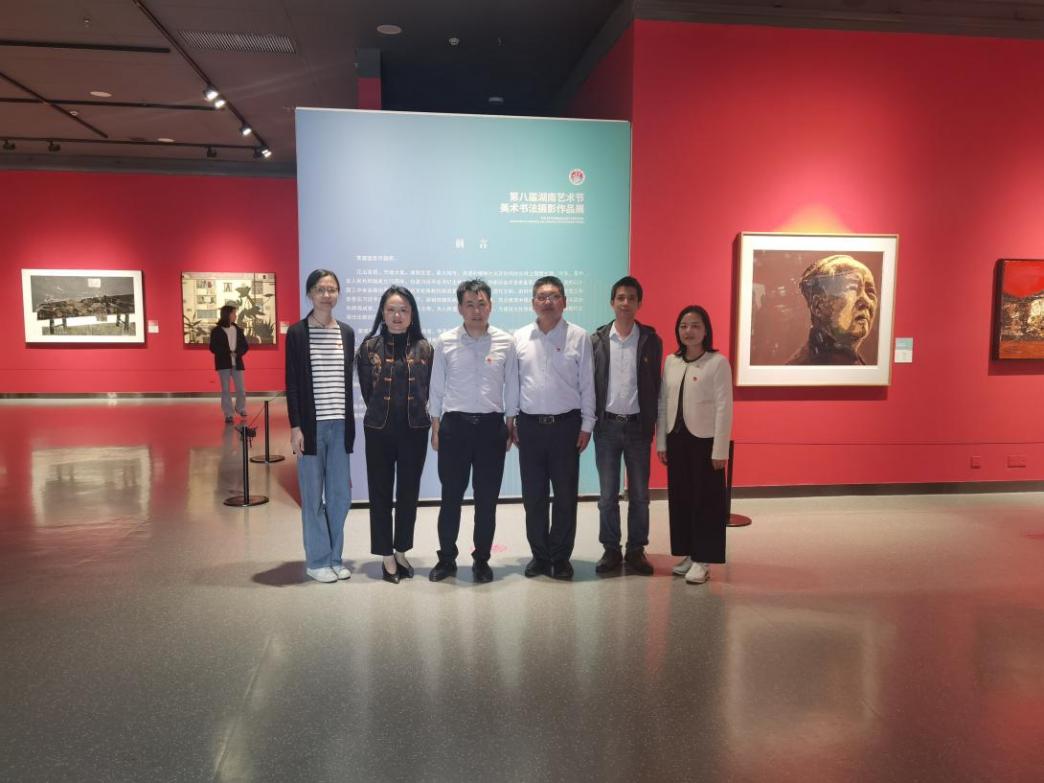 首先,师生党员至岳阳市美术馆集体参观了“第八届湖南艺术节美术、书法、摄影作品展”。第八届湖南艺术节美术、书法、摄影作品展展出的获奖作品和特邀作品,主题突出、内容丰富,从平凡里挖掘伟大、于质朴中展现崇高、在细微处提炼精神,用画笔描绘了大美湖湘的生态画卷,用毛笔赓续了源远流长的湖湘文脉,用镜头记录了新时代三湘大地的发展成就。